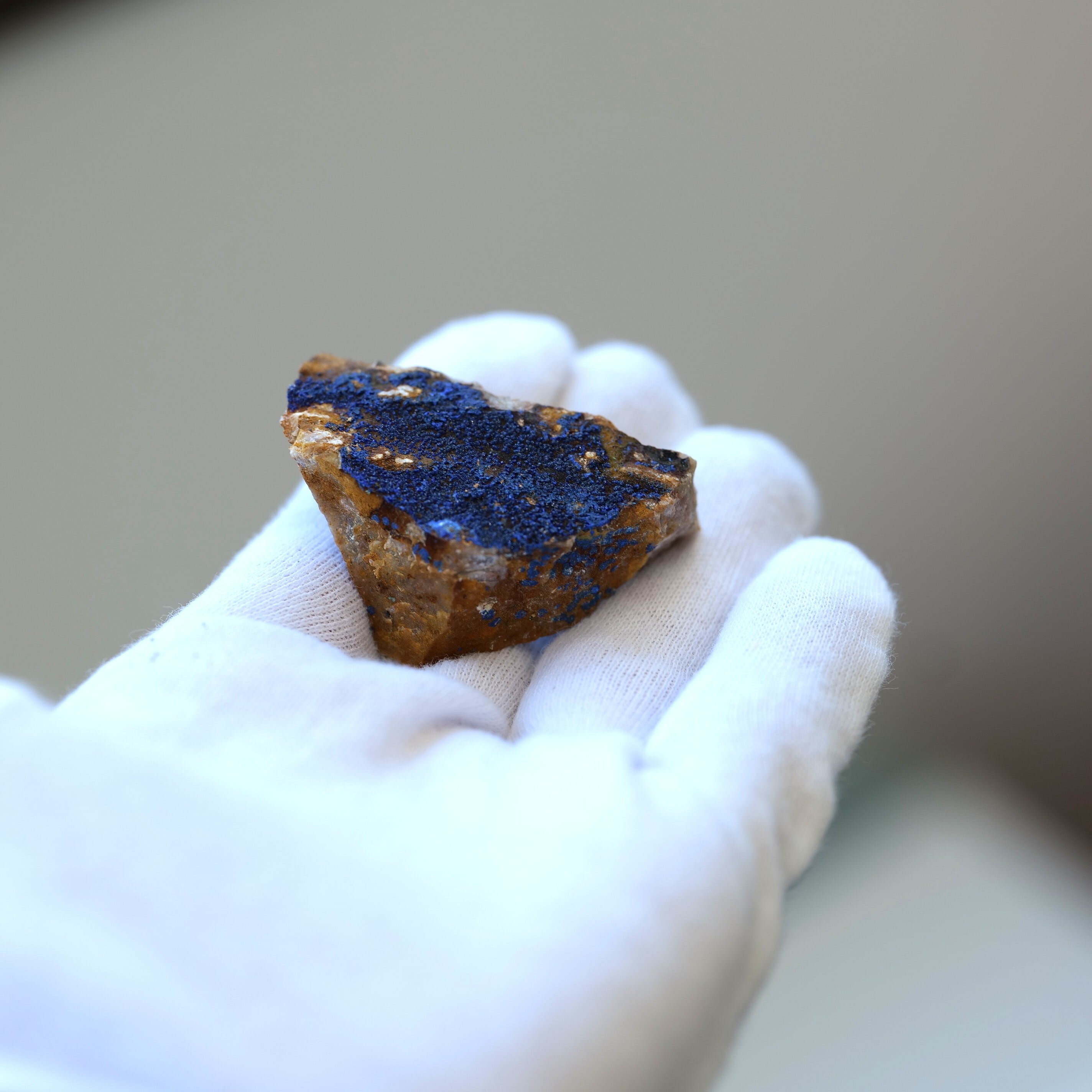 深く澄んだ藍色の結晶が、母岩の中に星屑のようにきらめく──
