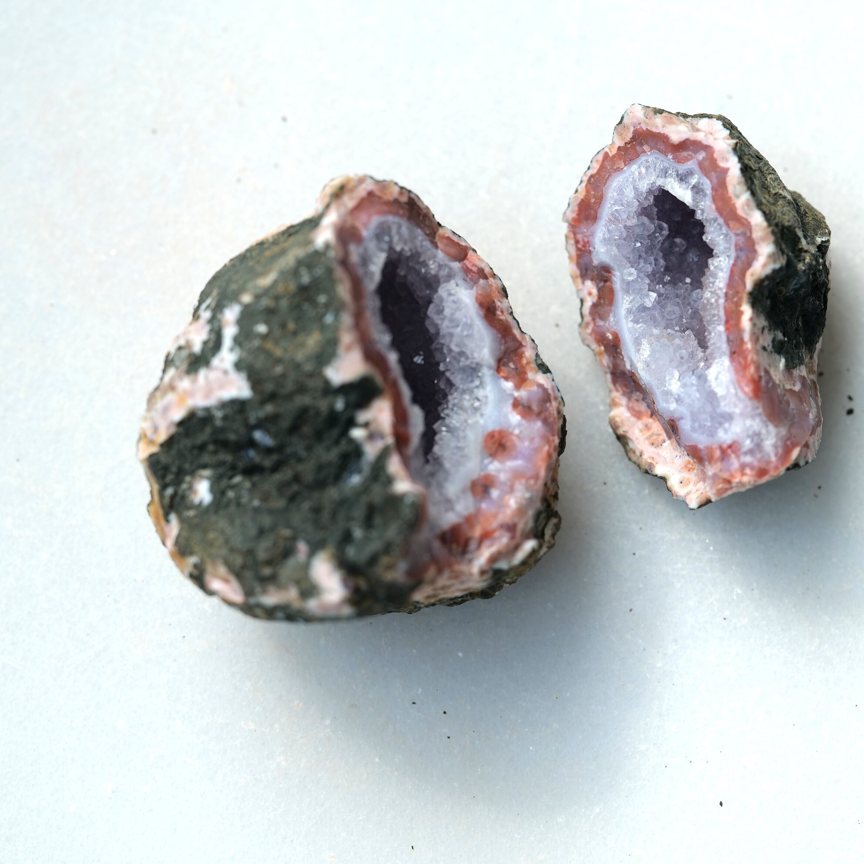 ジオードアメシストは、ピンクアメシストのエネルギーを秘めていて、さらに形状がめずらしくてパワフルなので、一目散に「私、ほしいんです」と購入しました。