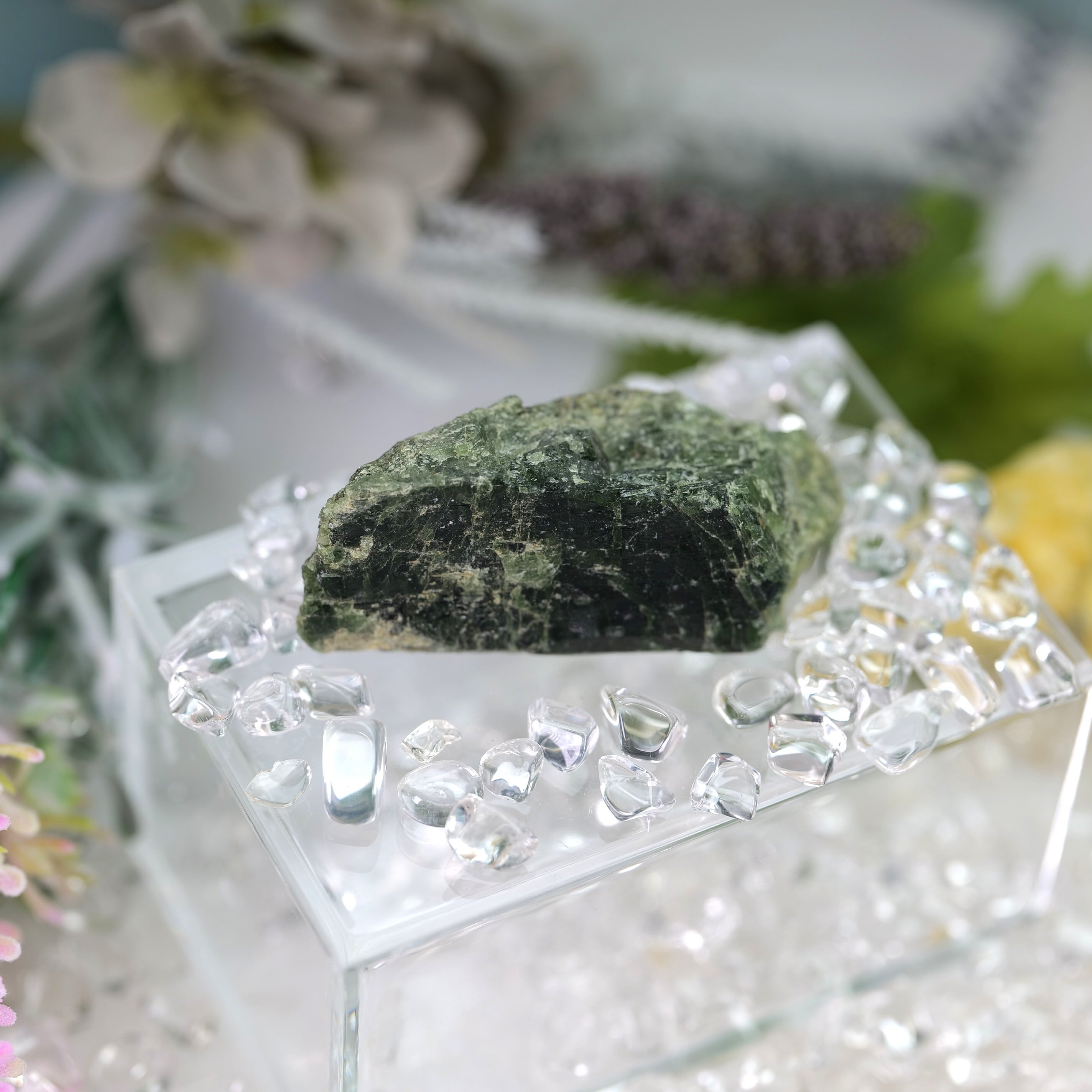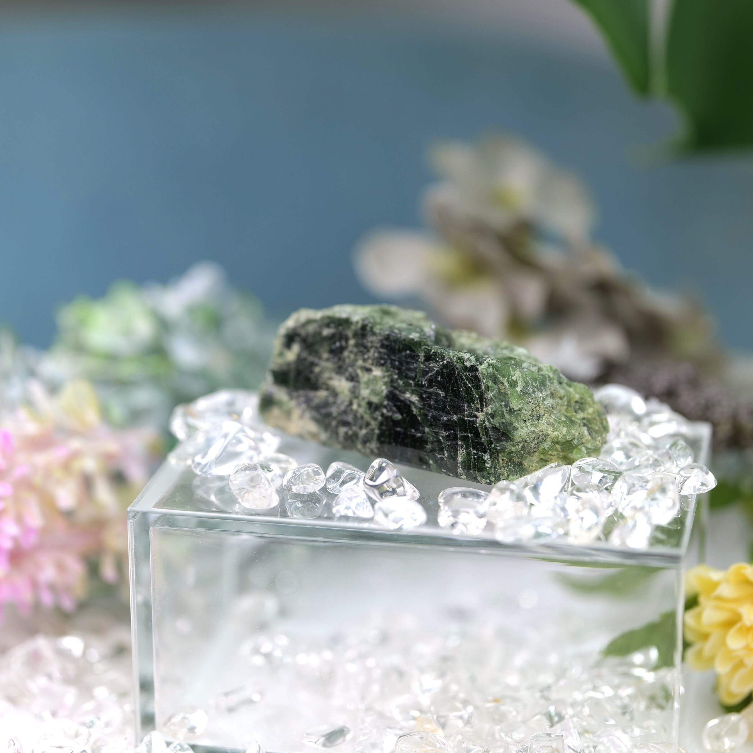 ダイオプサイドは、感情・行動・肉体のバランスを整える「知性と理性の象徴」とされるクリスタルです。