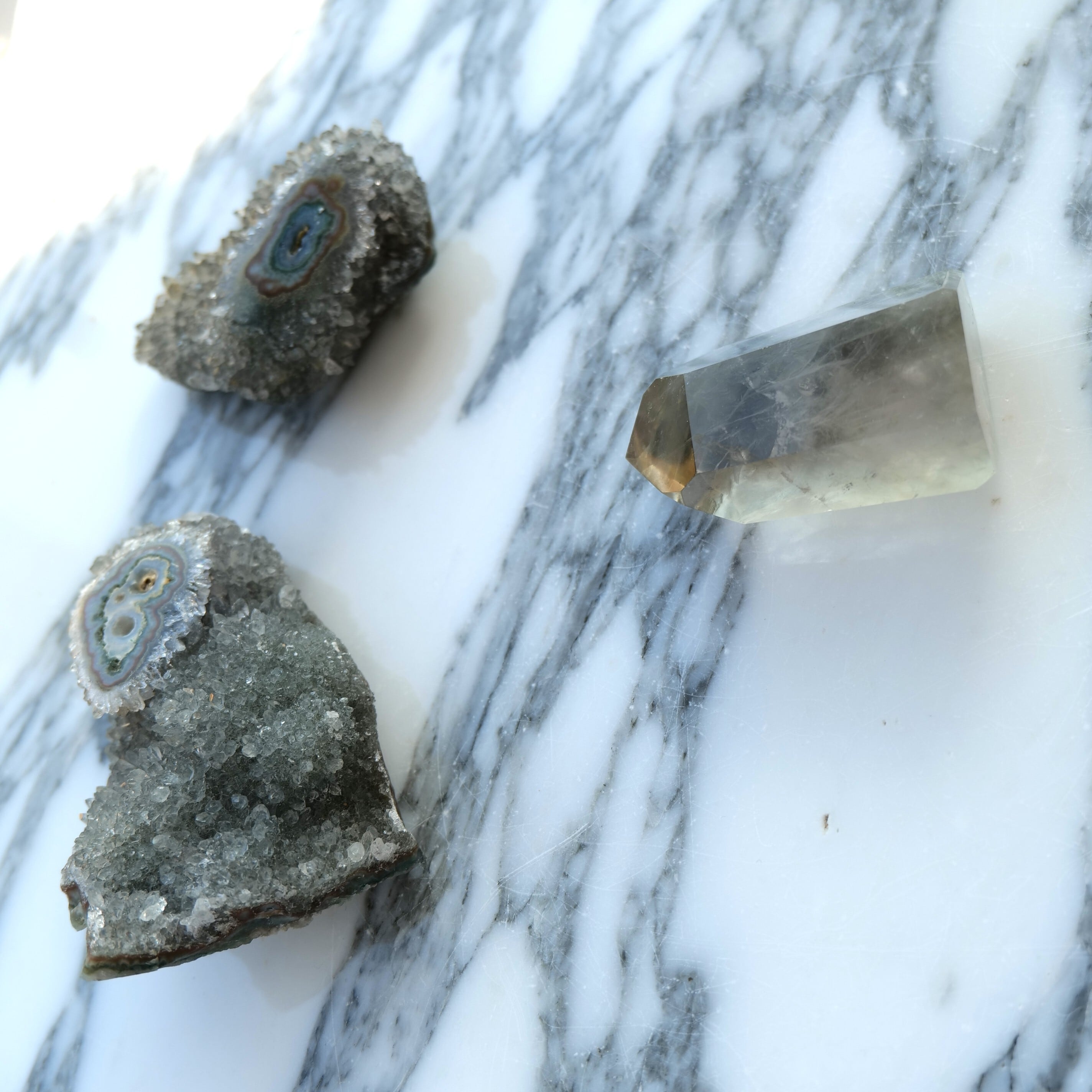 アメシストが地球の熱と時間を受けて変容した、