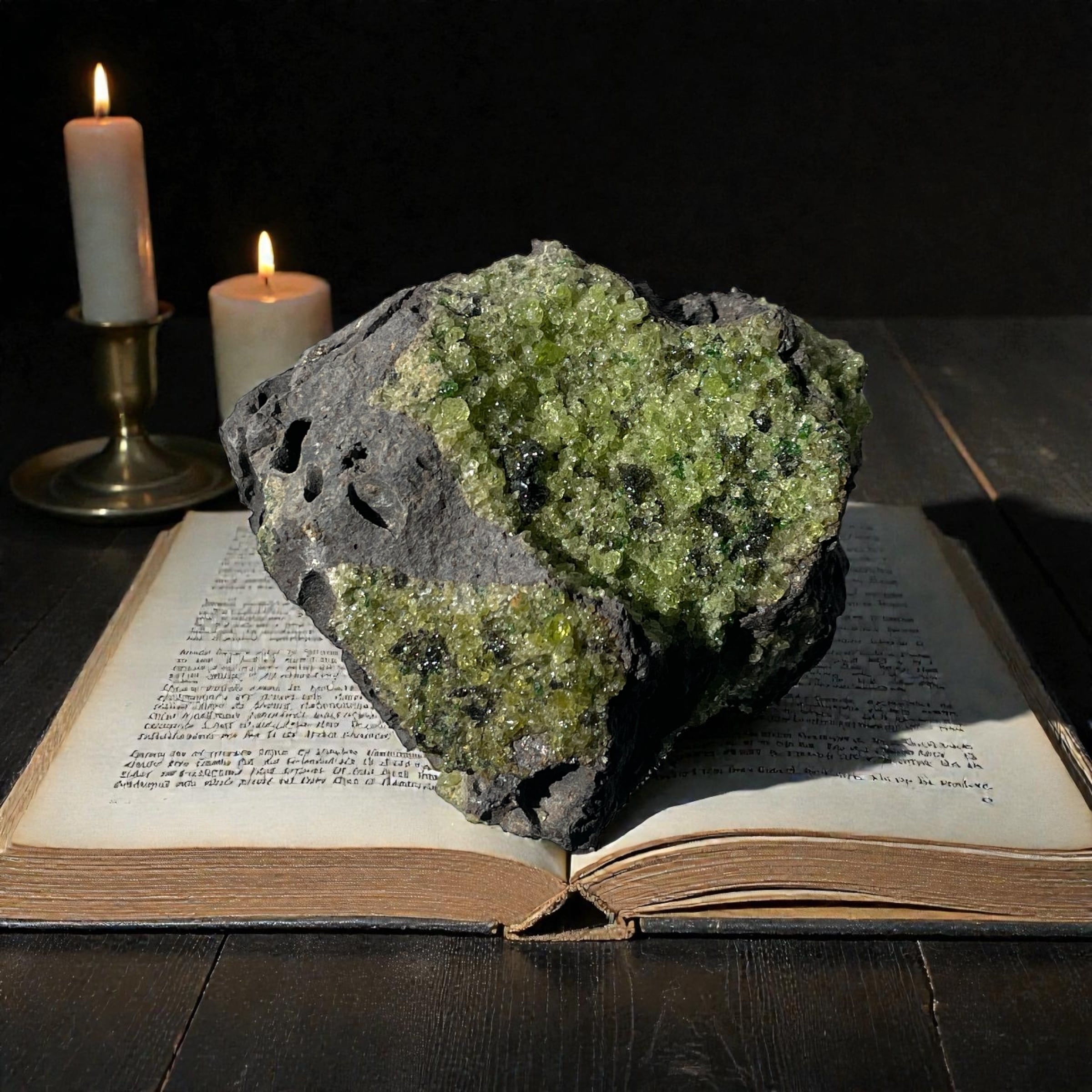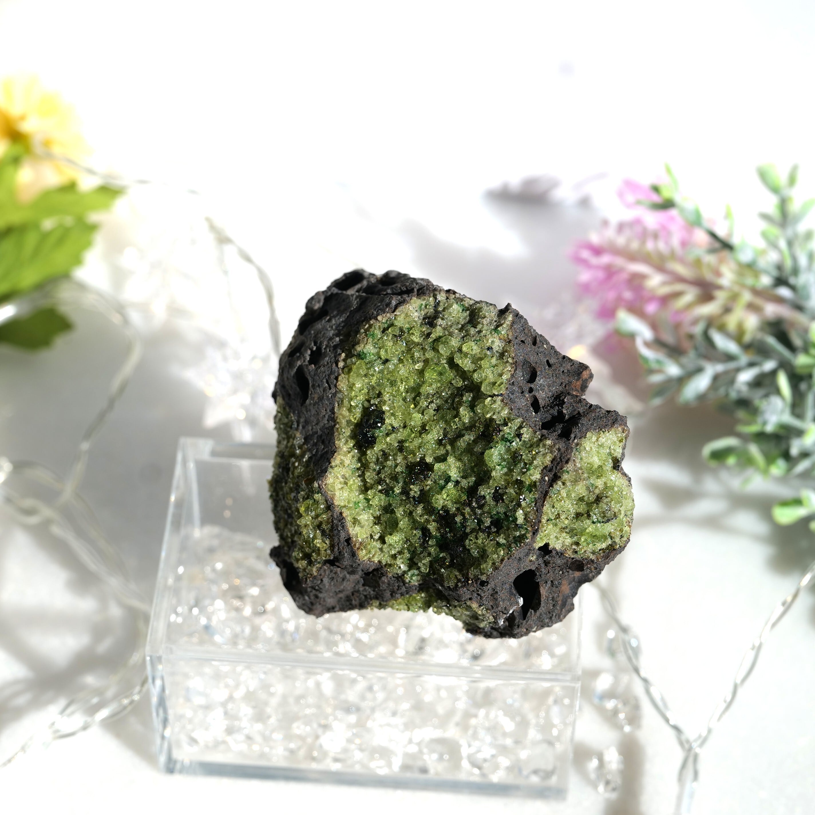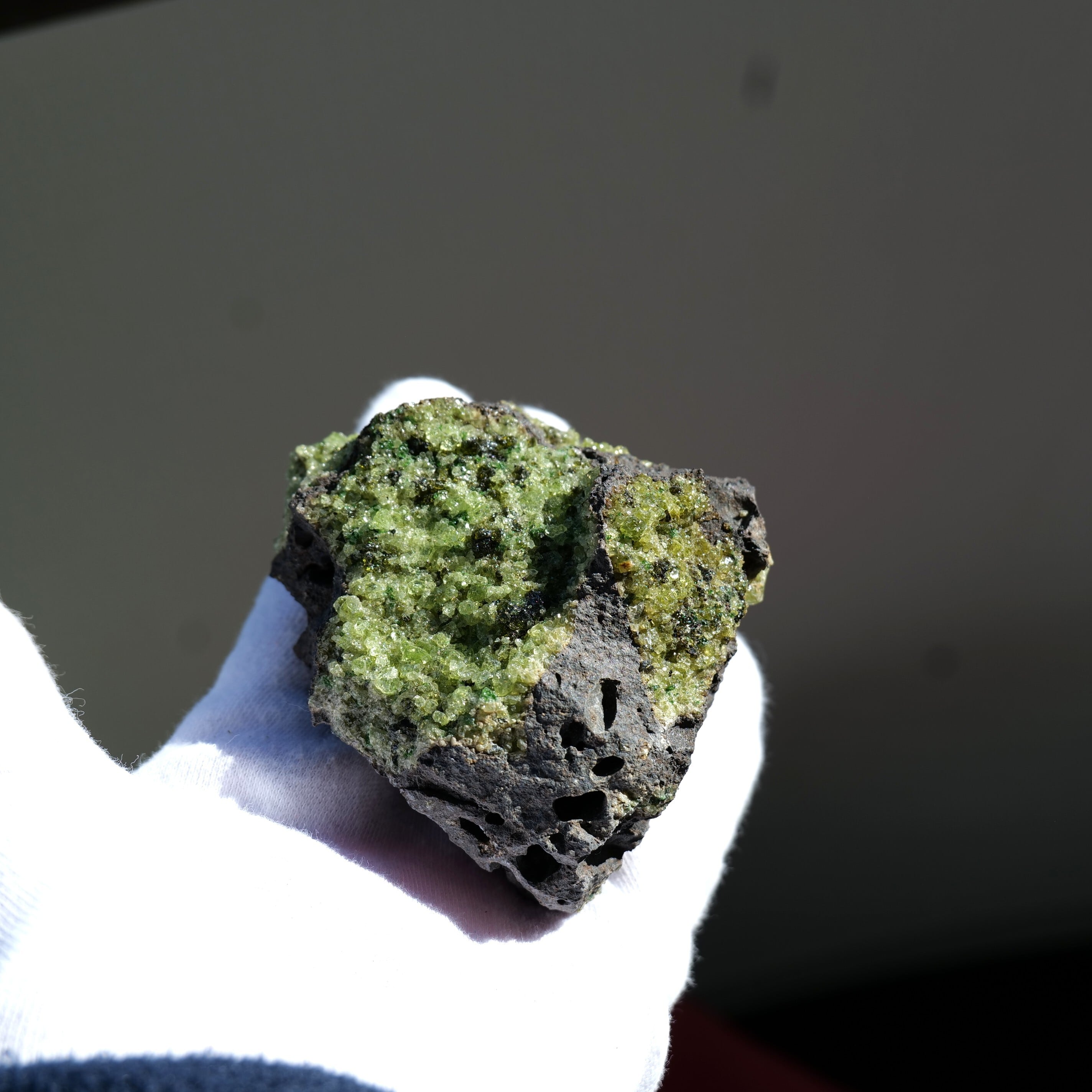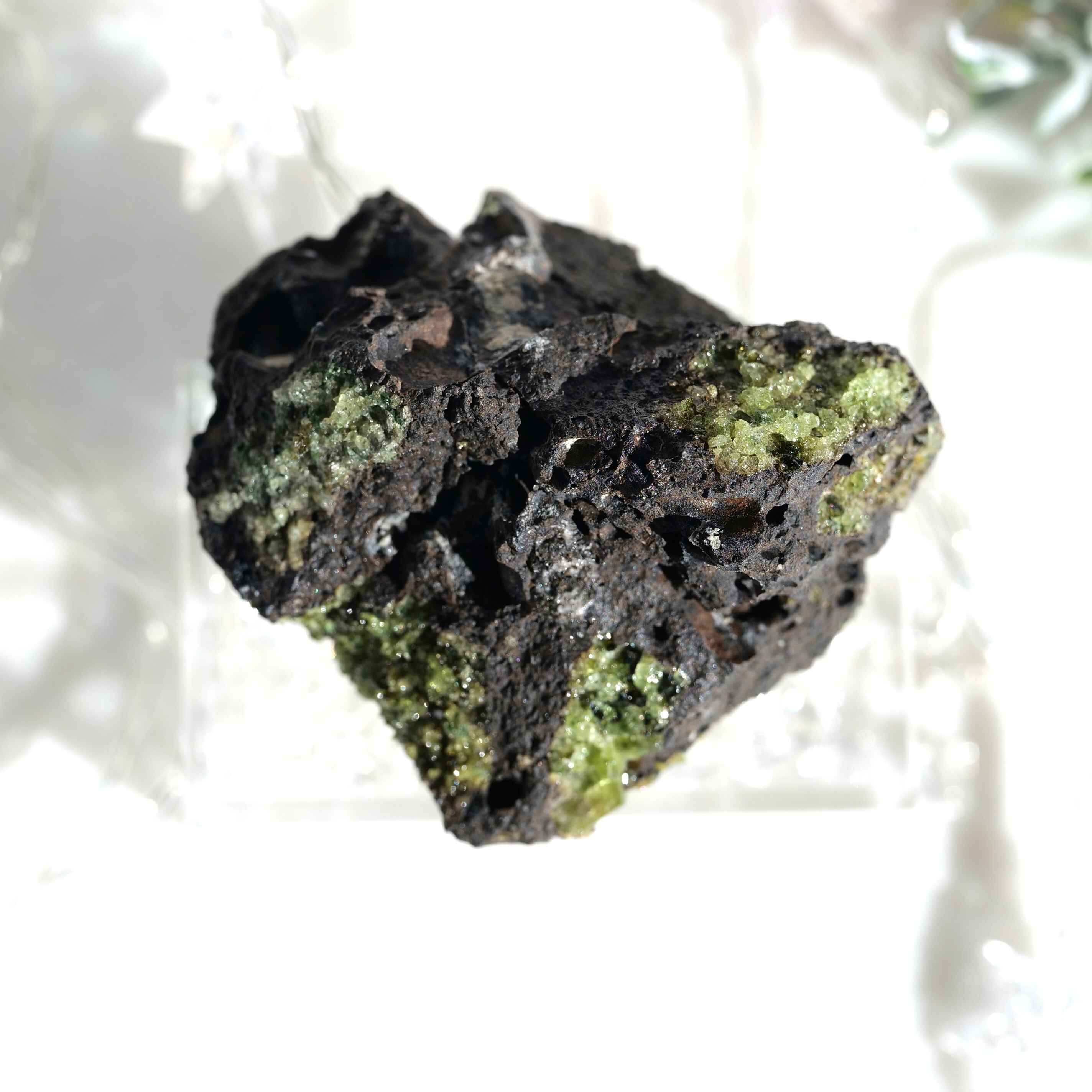 母岩にしっかりと根を張ったペリドットは、