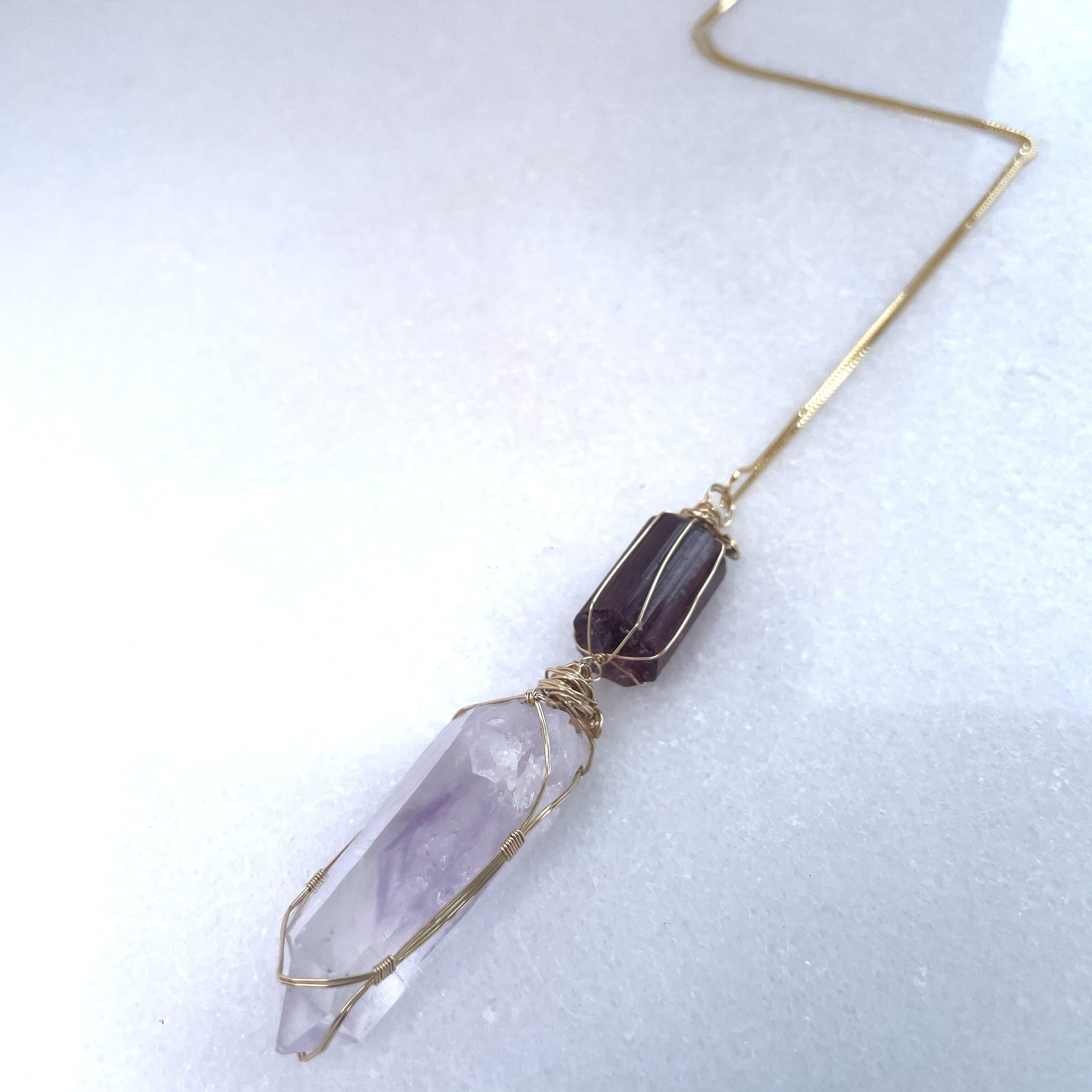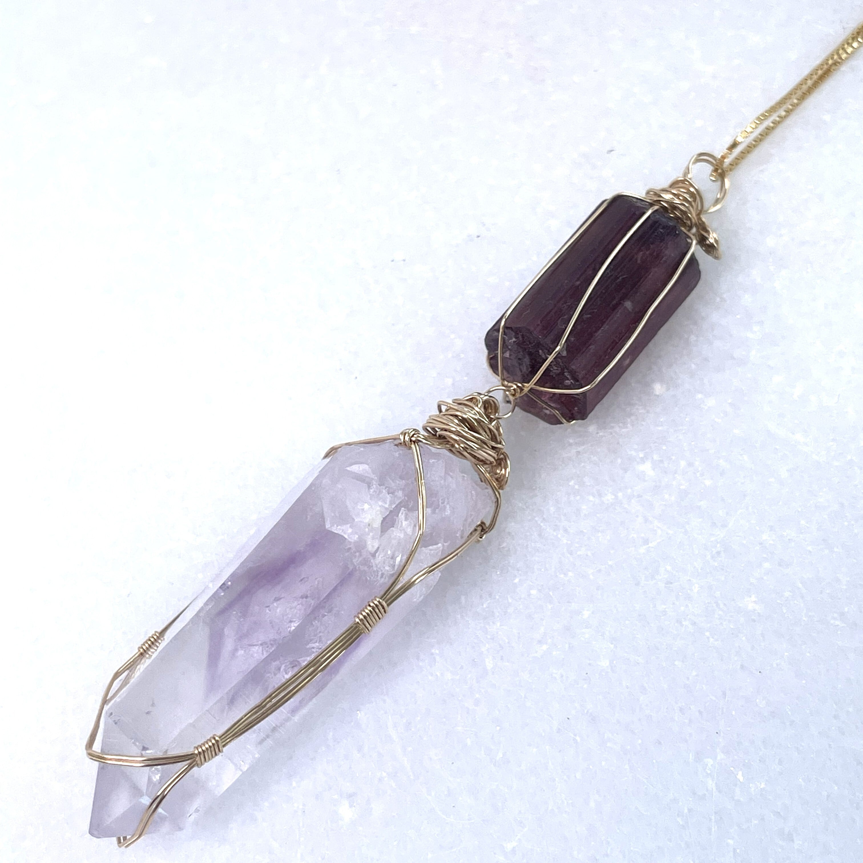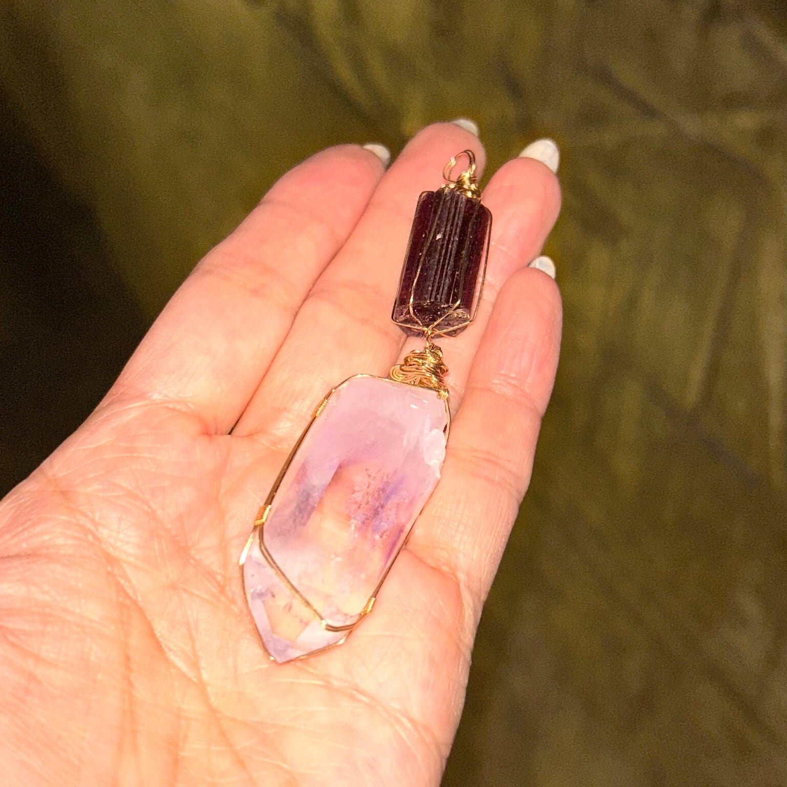 ピンクトルマリン&ブランドバーグアメシスト ☆Temple Codes of Egypt☆ワイヤージュエリー