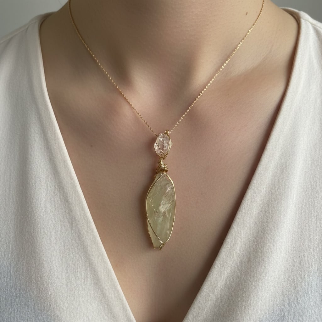 グリーンクンツァイト&リビアングラス ☆Temple Codes of Egypt☆ワイヤージュエリー