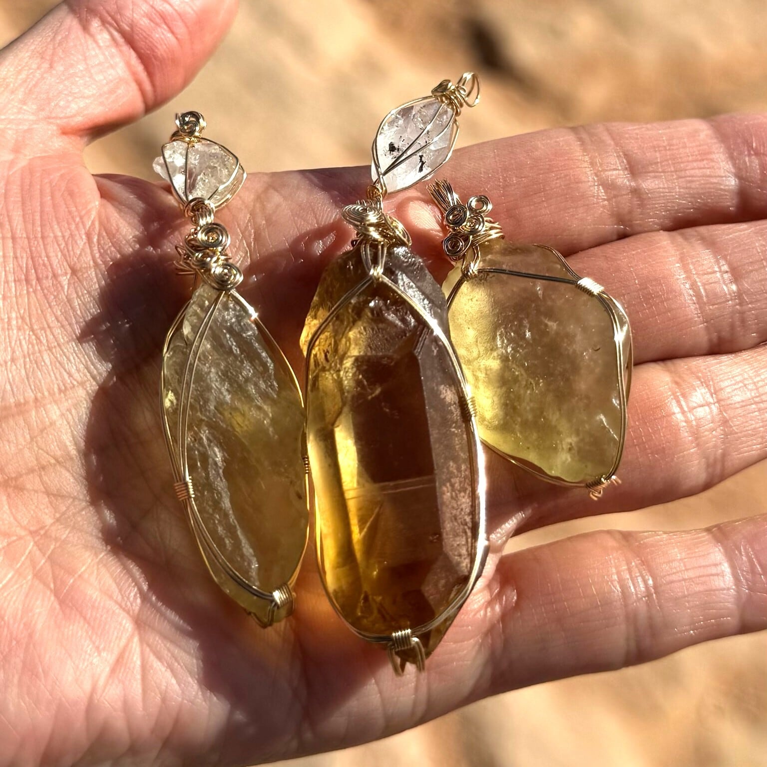 ルチル、リビアングラス、シトリンなどの豊かさや繁栄をもたらす石たちに、