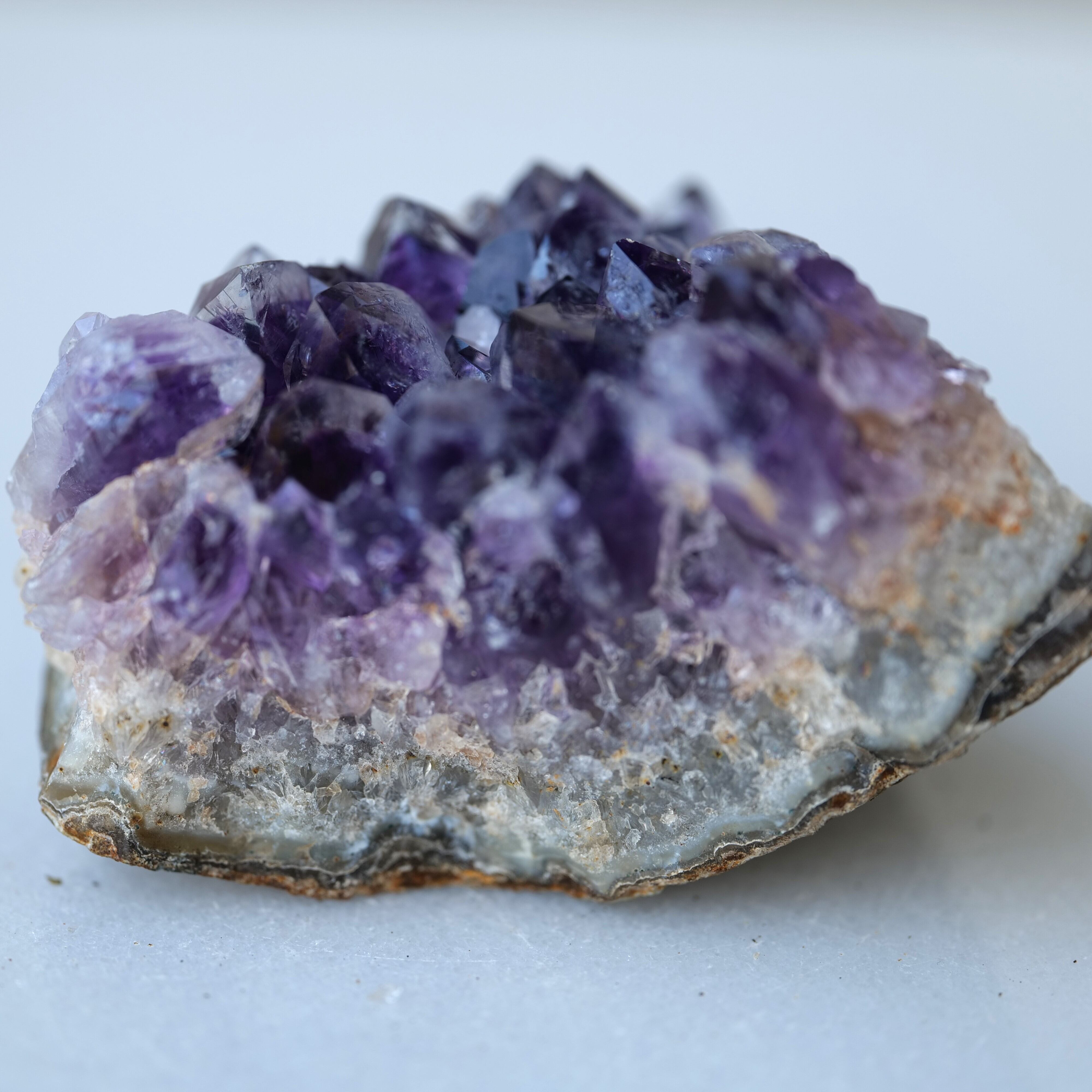 世界各地の宗教的儀式で必ず使われる紫という色には自分の中の霊性を高めるパワーがあります。そのため、紫のアメシストを身近に置くと心身を深く癒し、同時に精神を高い次元へ成長させ、冷静な判断力、直感力が備わります。また、第七チャクラに作用し、眉間の「第三の目」にこの石を乗せて腹想すると、魂への窓が開くと言われています。