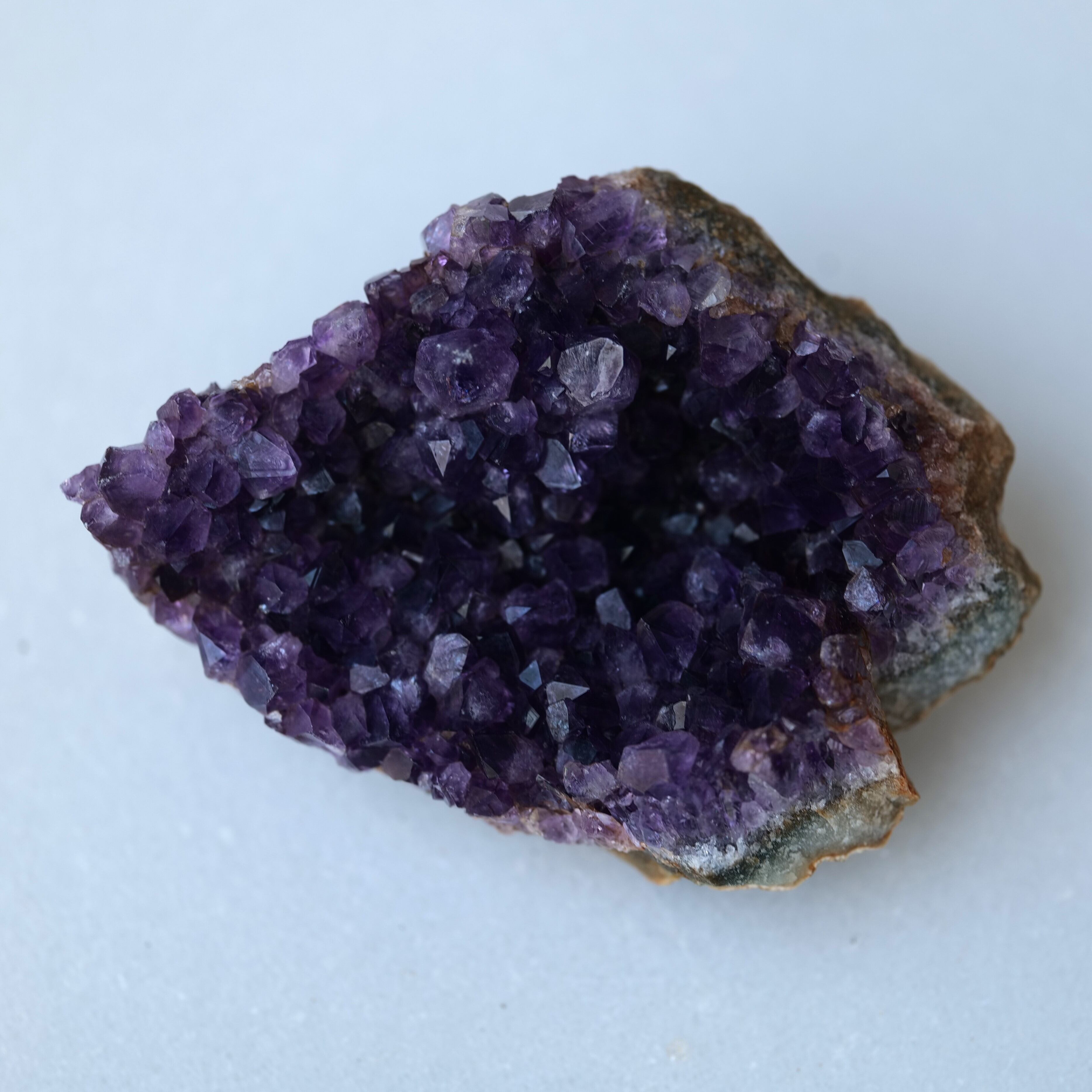 世界各地の宗教的儀式で必ず使われる紫という色には自分の中の霊性を高めるパワーがあります。そのため、紫のアメシストを身近に置くと心身を深く癒し、同時に精神を高い次元へ成長させ、冷静な判断力、直感力が備わります。また、第七チャクラに作用し、眉間の「第三の目」にこの石を乗せて腹想すると、魂への窓が開くと言われています。