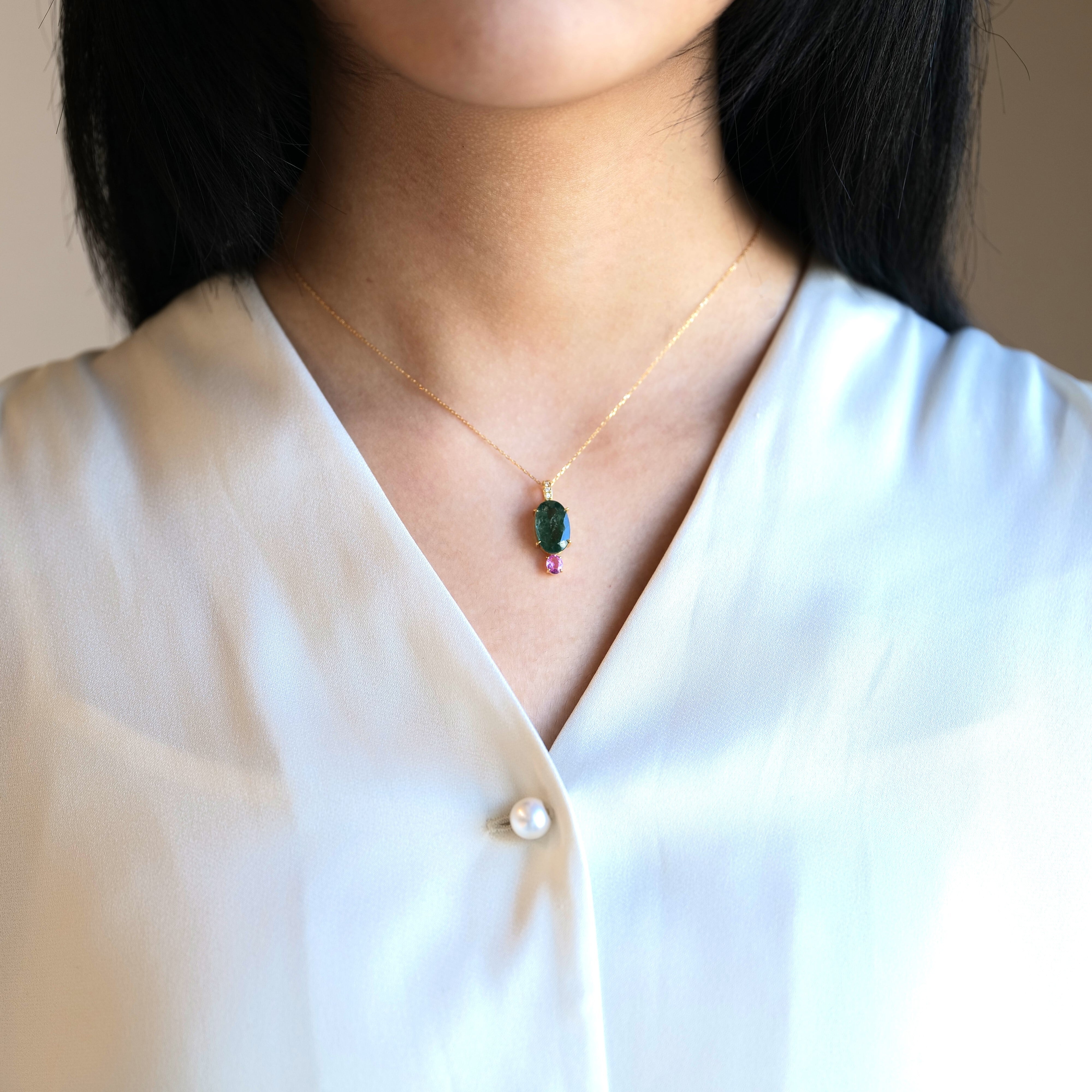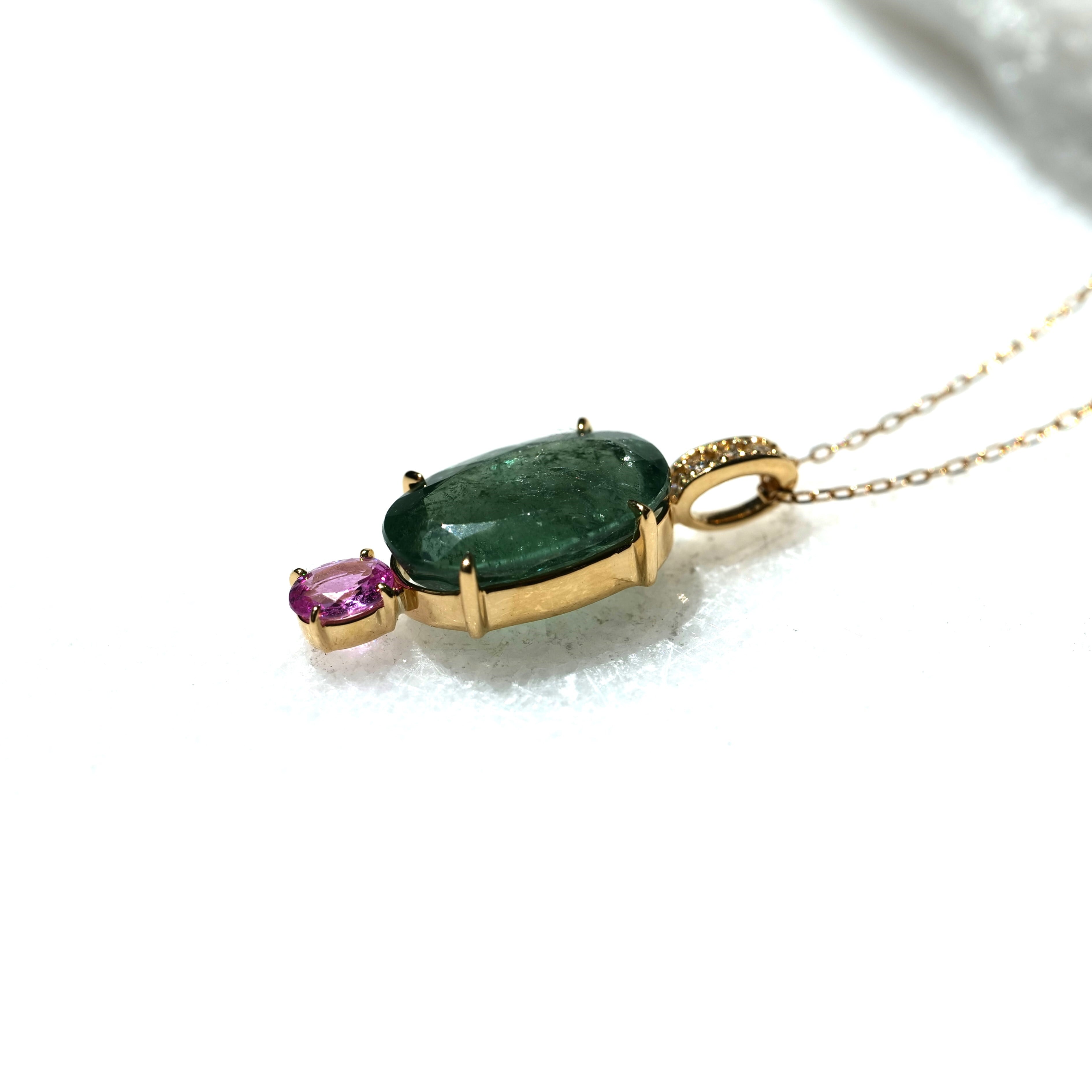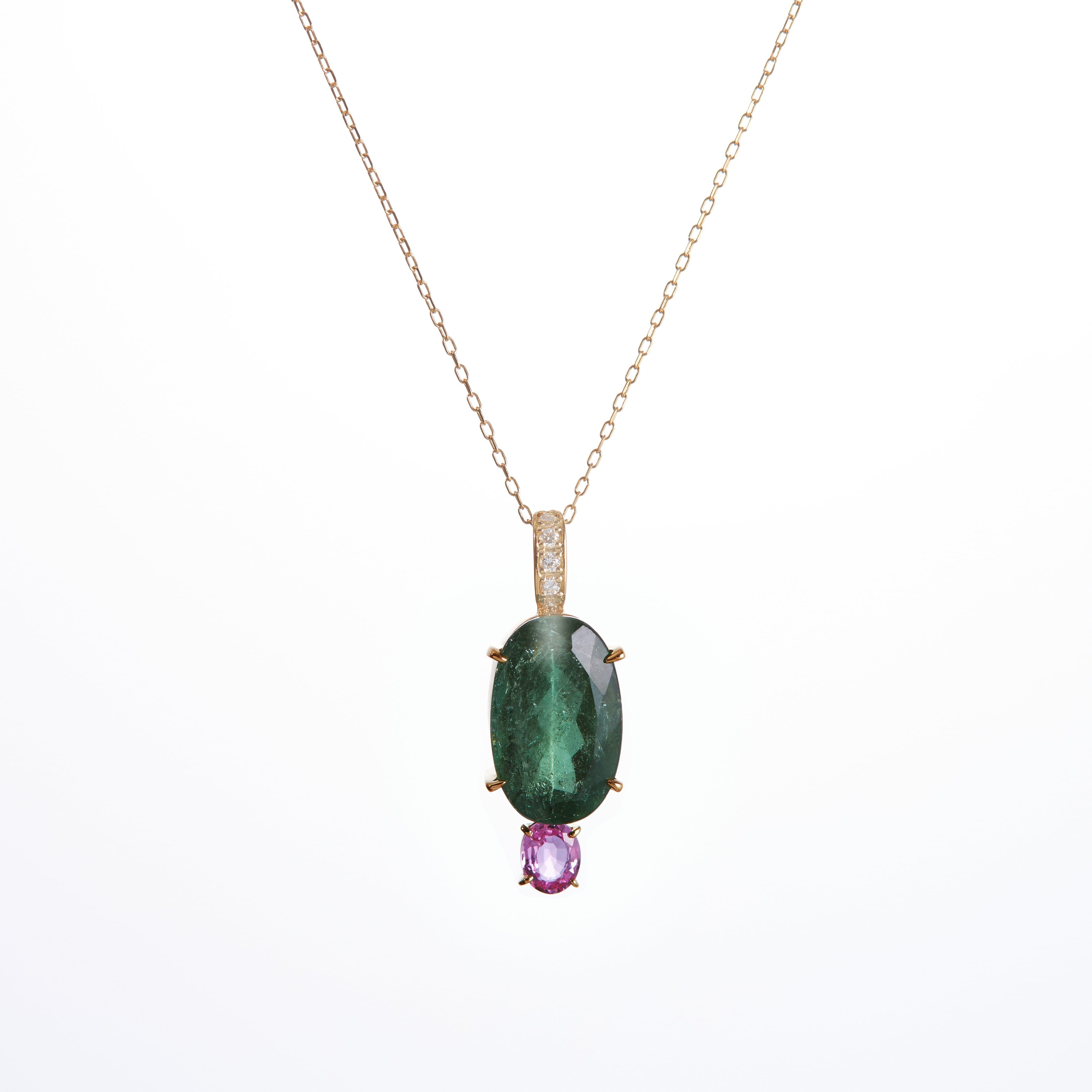 トルマリンとピンクサファイアとダイヤモンドの絶妙な組み合わせのネックレス。