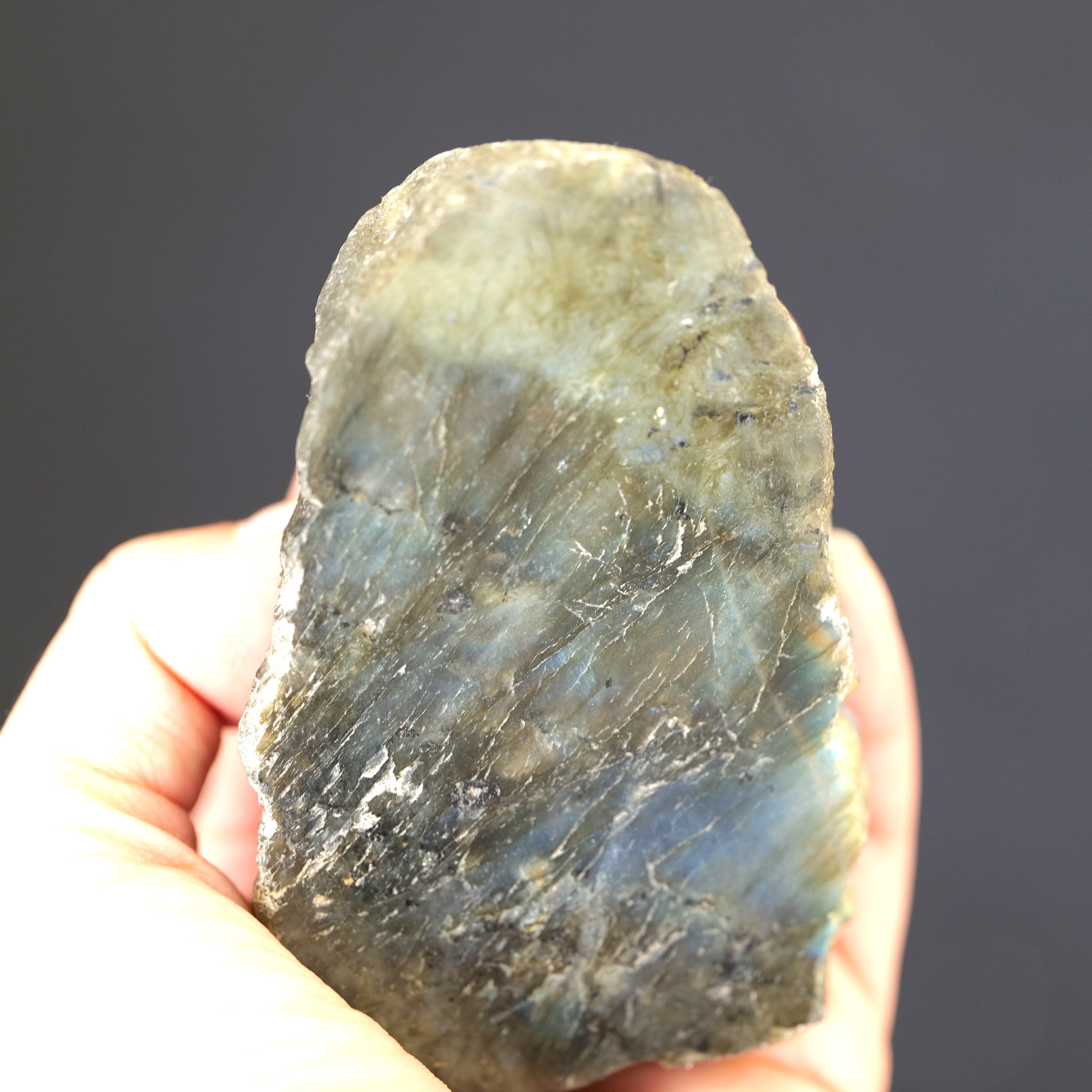 角度によって深いブルーや、ブルーグリーンが浮かび上がる、たくさんの輝きを秘めた、神秘的で美しい石です。