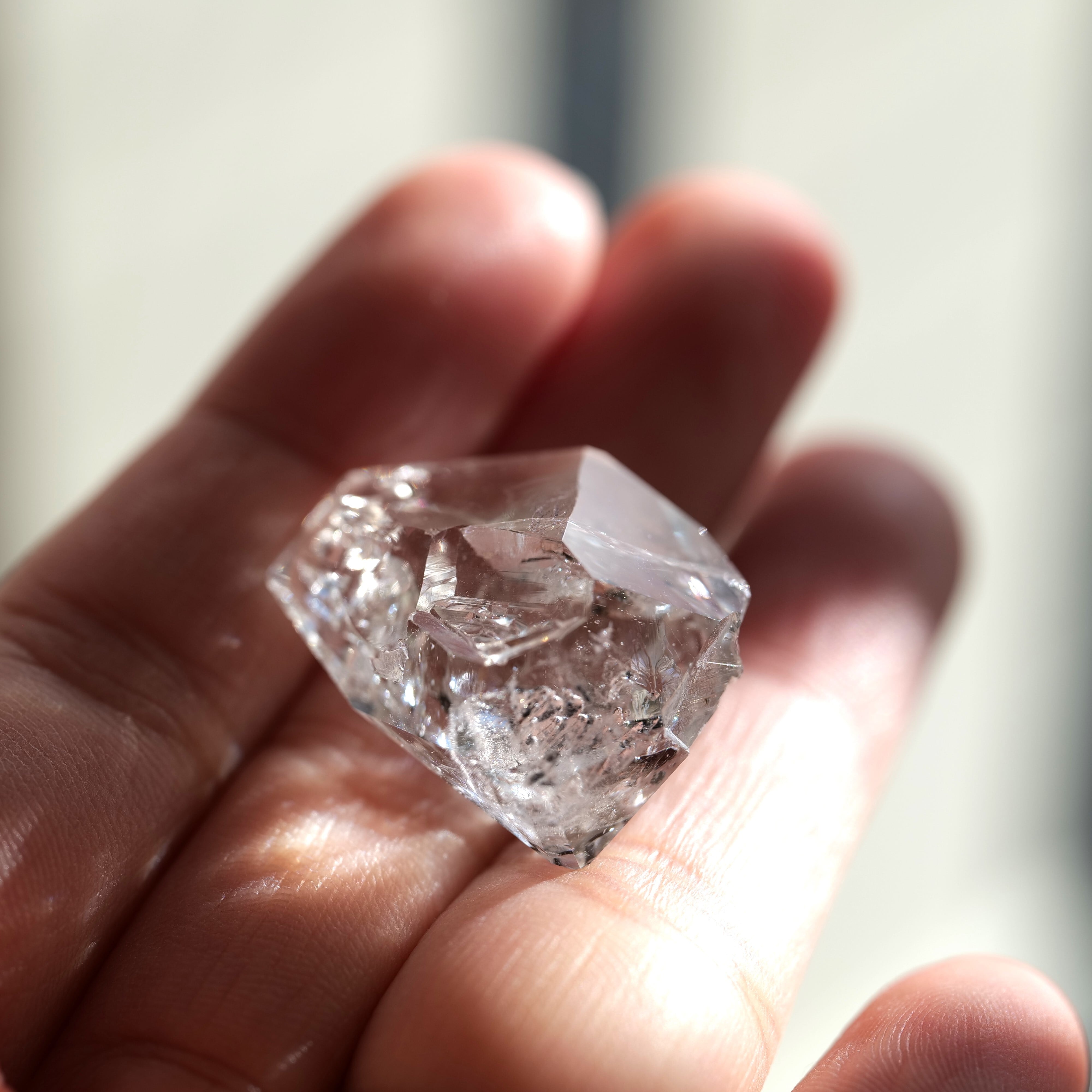 ハーキマーダイヤモンドは、ニューヨーク州ハーキマーでしか採れない特別なクリスタル。その名の通り、まるでダイヤモンドのように美しく輝き、キラキラと透明感あふれる宝石です。非常にレアで、高い純度と特別なエネルギーを持つ石です。